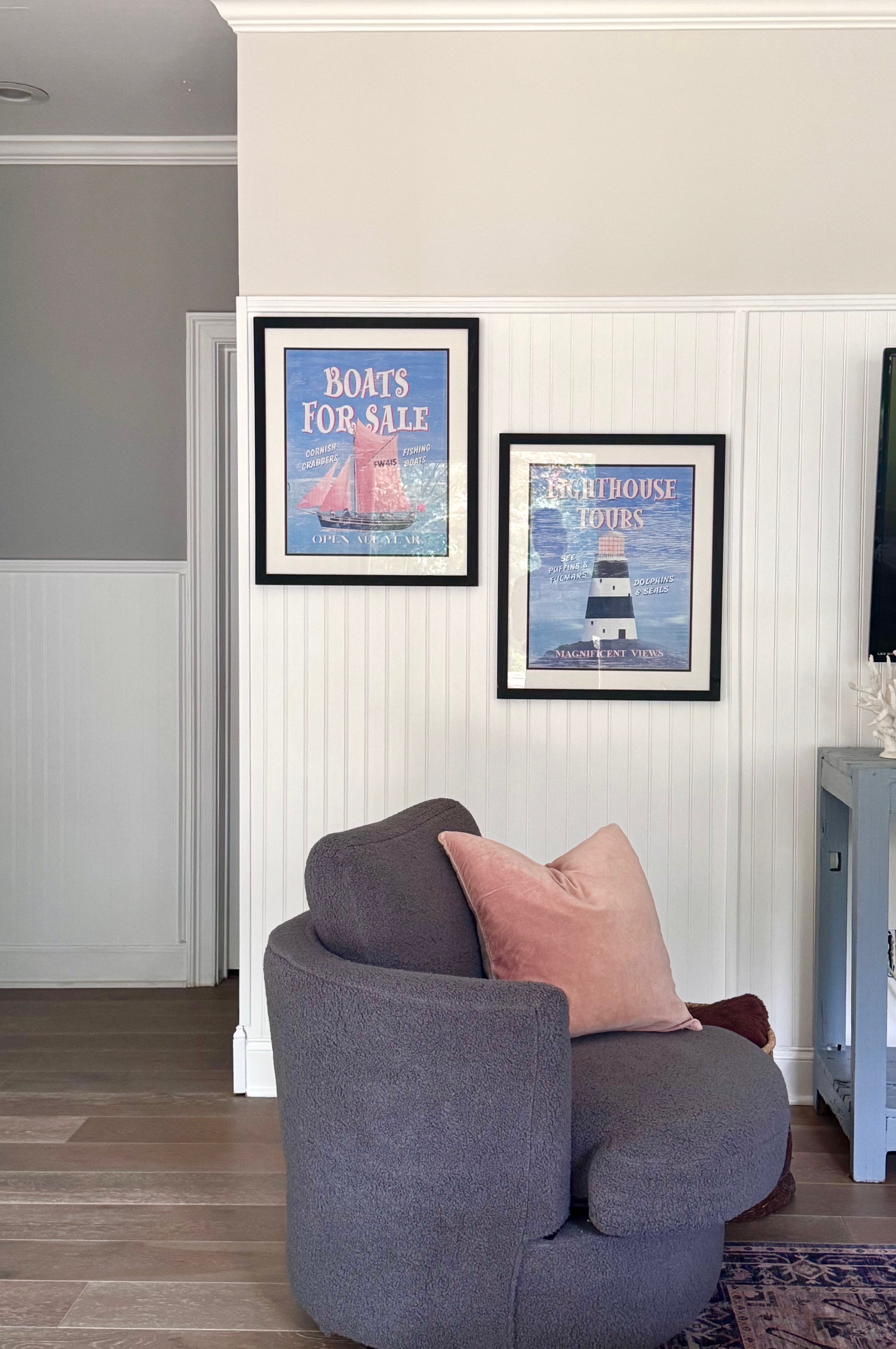 At Duke Manor Farm, we added wood planked wall in Lilys beach inspired bedroom and faux wall panels in guest bathroom to bring visual interest without a big commitment. It’s all about layering personality in the right places.