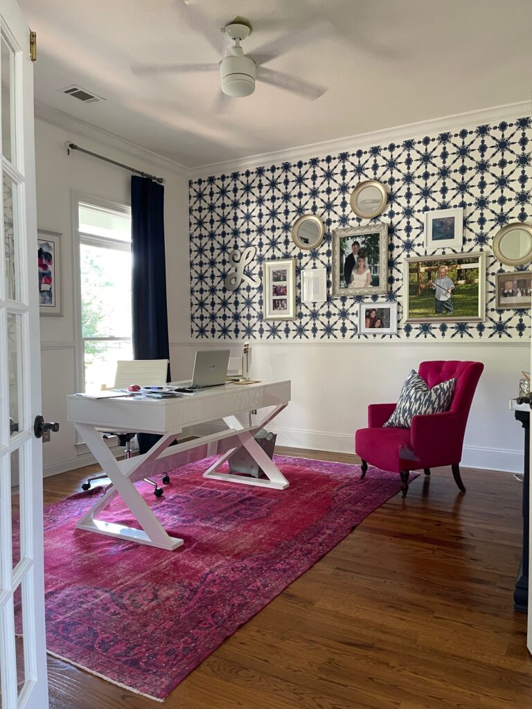 Now, the space has been transformed into a bright, stylish, and functional office that inspires creativity and brings me joy every time I walk in. With a crisp white desk, bold patterned wallpaper, and cozy details, it finally feels like the perfect balance of fresh and inviting.